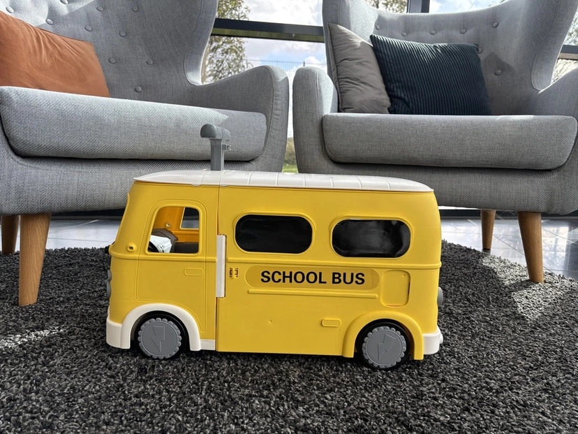 Dette 2 i 1 legetøj er designet til at inspirere og engagere børn i timevis af fantasifuld leg. Når skolebussen folder sig ud, åbenbares et charmerende dukkehus, komplet med møbler og legefigurer, der inviterer til uendelige eventyr. Børn kan lege skoledag, hjemmeliv eller endda kombinere de to for en helstøbt oplevelse.