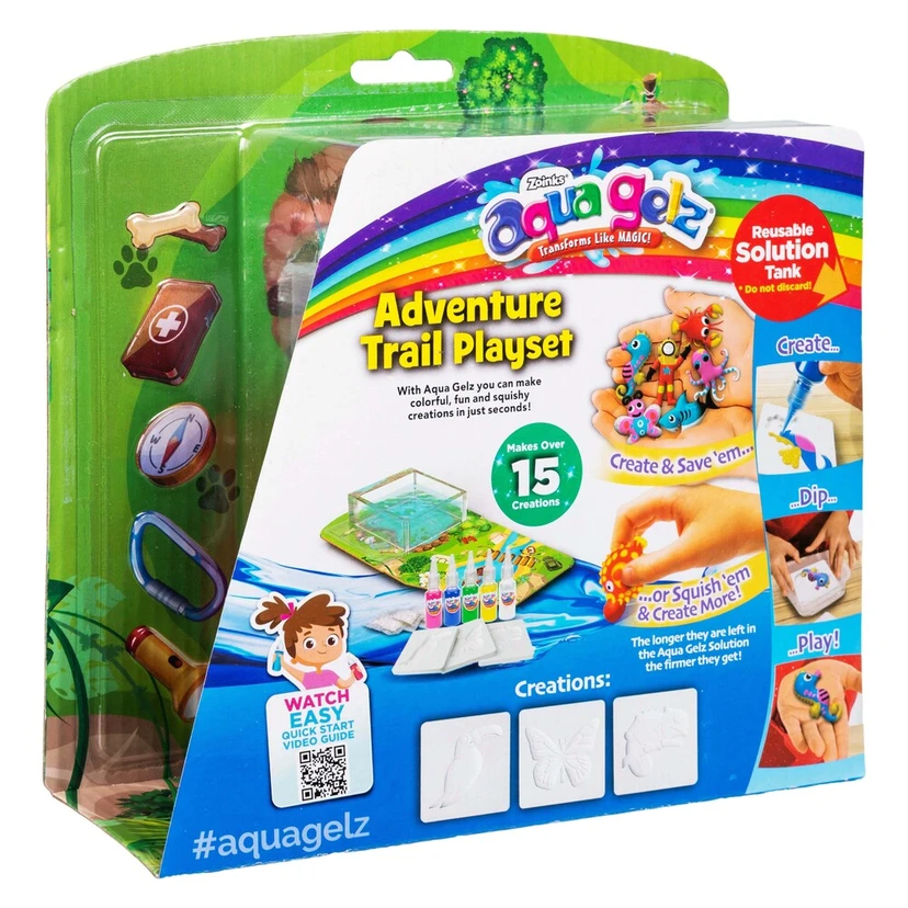 Aqua Gelz Adventure Trail er et magisk hobby-sæt med farvet gelé, der lader dig skabe sjove, farverige og bløde 3D-figurer! Pris 119,95 DKK