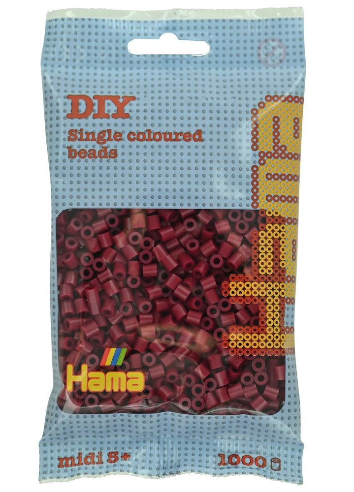 Produktbeskrivelse af Hama midi perler 1000 stk mørk kirsebær 118