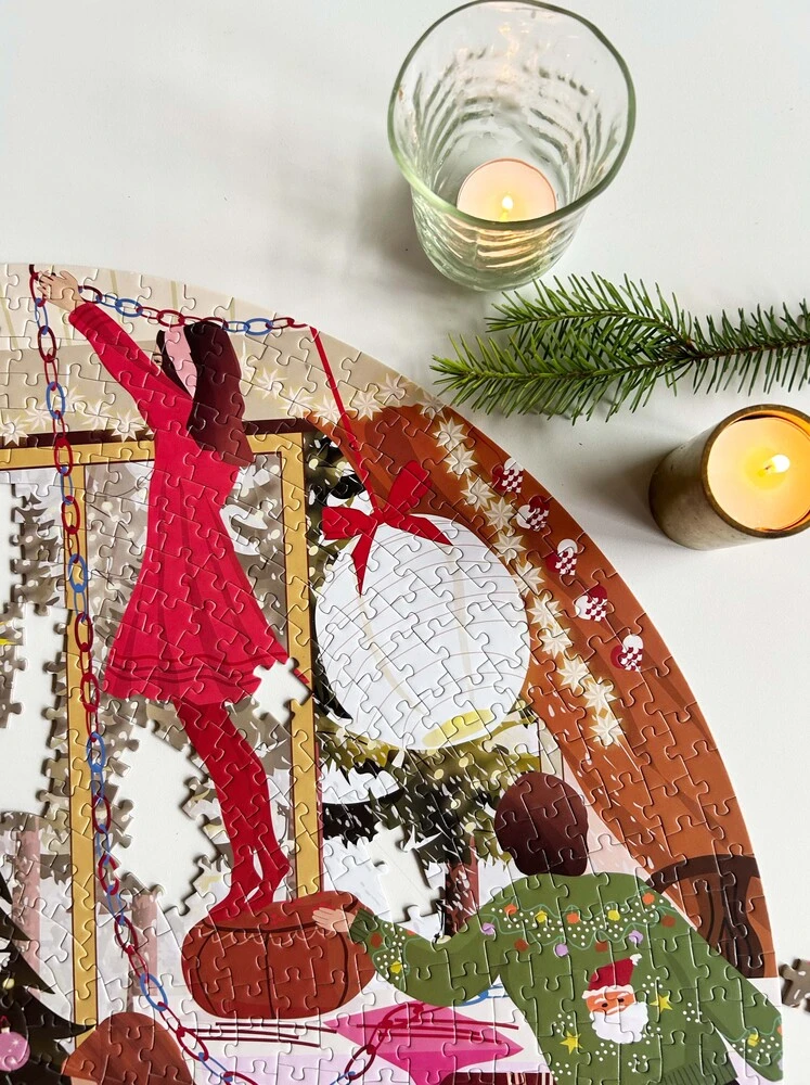 Der er noget særligt over decemberdage, hvor vi er sammen om juleforberedelserne. Udenfor daler sneen stille, og indenfor er der varmt og hyggeligt. Der bliver strikket, pakket gaver ind og hængt guirlander op. Alle de små forberedelser minder os om, at juleaften nærmer sig. Vi er sammen, vi glæder os – og det er en helt perfekt dag i december. OBS! Puslespillet indeholder små brikker, så spillet bør ikke komme i nærheden af børn under 3 år.