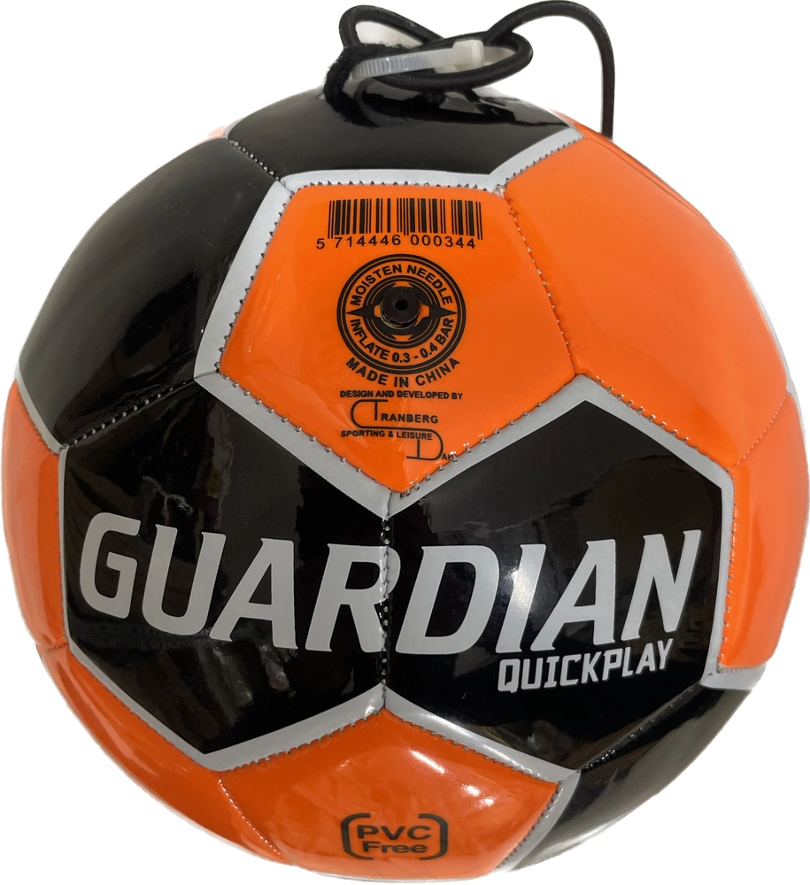 Guardian træningsbold med elastik gør det muligt at træne spark og skud alene. Den er velegnet til både børn og unge, der vil forbedre teknikken.