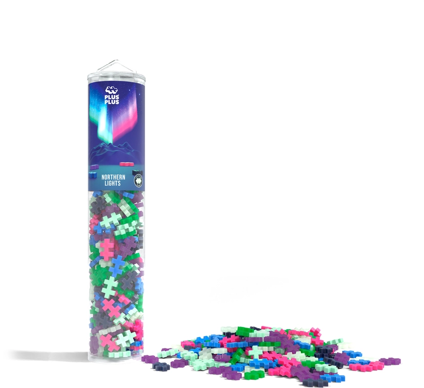 Oplev en fortryllende farvepalette inspireret af nordlys og Plus-Plus’ nordiske arv med Northern Lights mix-tuben. Røret indeholder 240 stk. Plus-Plus i et praktisk, genanvendeligt rør.