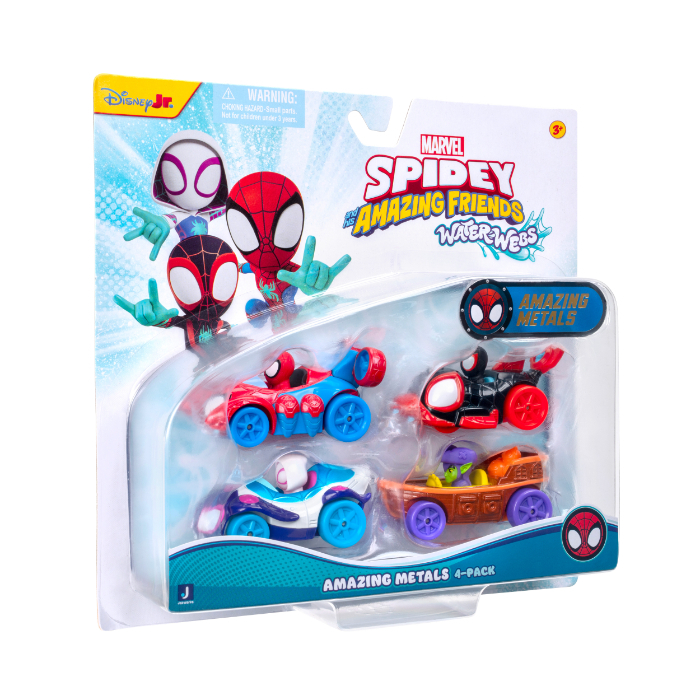 Dette luksussæt indeholder fire 8 cm støbte Water-Webs køretøjer i metal med fungerende hjul og indbyggede figurer. Hvert køretøj har et unikt vandtema og inkluderer følgende tre helte og én skurk: Spidey, Ghost-Spider, Spin og Green Goblin.