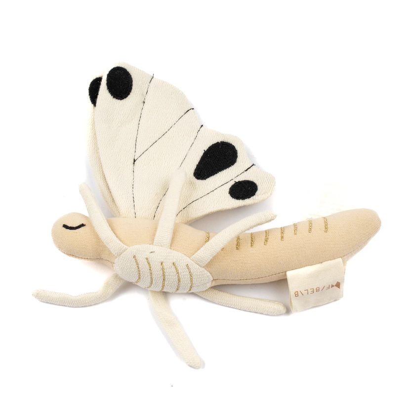 Vi præsenterer raslesommerfuglen - et dejligt legetøj designet til at fange og underholde din lille guldklump. Denne sommerfuglerangle er lavet af blød, økologisk bomuld og er både skånsom mod din bab...
