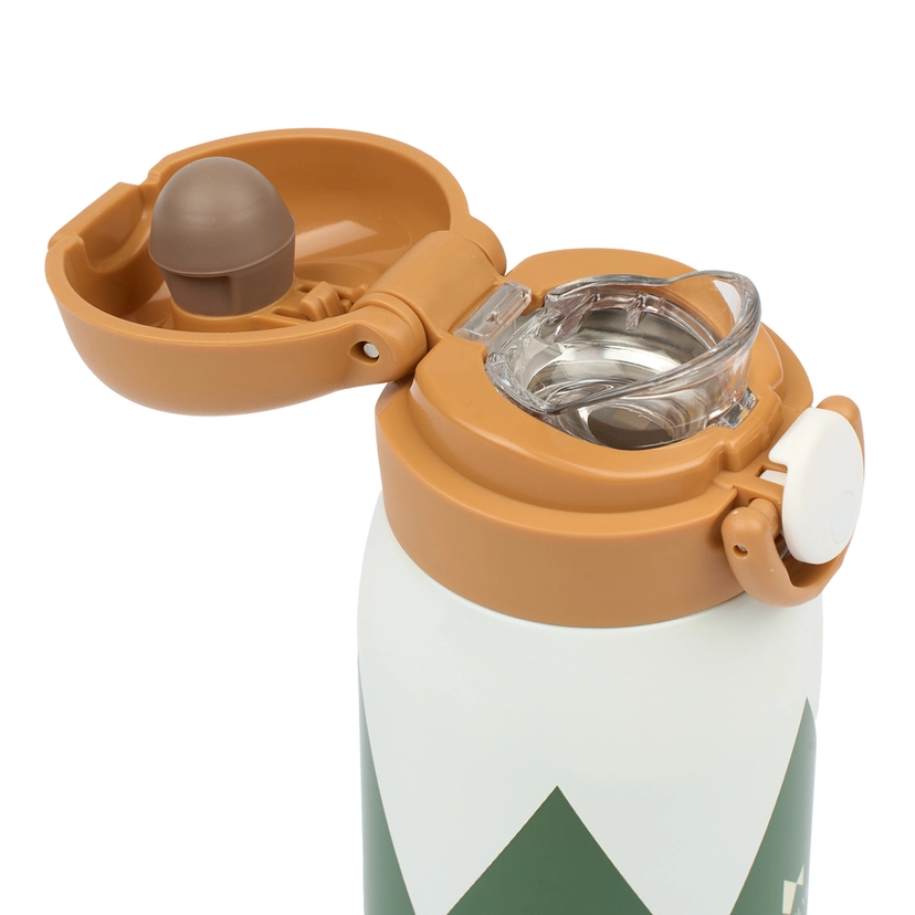Fabelabs vandflaske er perfekt at tage med på farten eller i børnehave og skole. Vandflasken er nem for de små at bruge og drikke af med den nemme, men sikre åbning, der forhindrer vandflasken i at åbne sig inde i skoletasken. Der er tilføjet en drikketud for sikker drikkevaresikkerhed, og den passer perfekt i siderne af vores nye rygsæk - stor. Vandflasken rummer 320 ml og er lavet af rustfrit stål i 18/10 kvalitet og har en BPA-fri PP-plasthætte og silikoneforsegling. Vandflasken holder drikkevarer kolde i 24 timer og varme i 10 timer og hverken modtager eller afgiver smag under brug. Pleje og brug: Vask vandflasken i koldt eller varmt vand med en blød svamp eller børste for at rengøre indersiden. Hold vandflasken ren for at undgå lugt, og opbevar vandflasken uden låg skruet på for optimal tørring. For grundig rengøring kan du fylde vandflasken med varmt vand med 10 % eddike i 30 minutter og til sidst rengøre med rent vand og en blød børste. Advarsel: Brug den ikke til kulsyreholdige drikkevarer, salte supper. osv. Rengør ikke vandflasken i opvaskemaskinen, da dette vil reducere den termiske effekt. Brug ikke slibemidler eller slibende rengøringsmidler. Ikke egnet til børn under 4 år