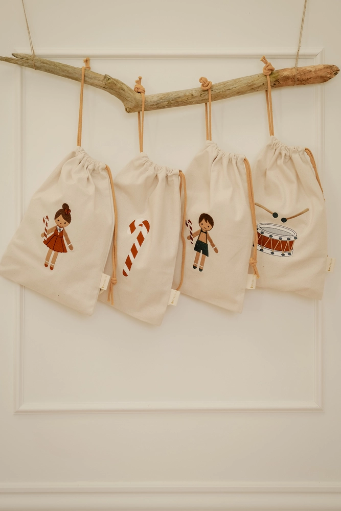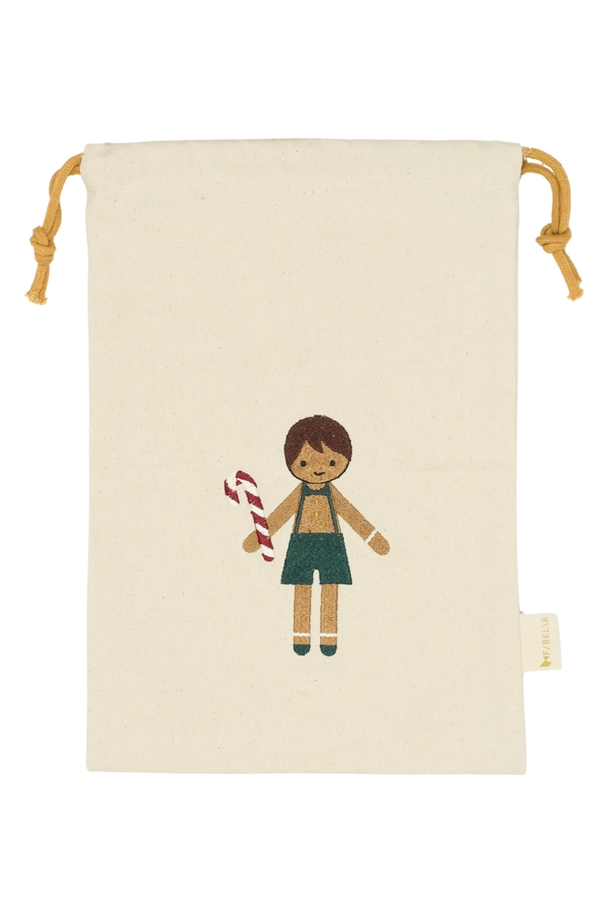 Fabelabs gavepose – Gingerbread Boy er et festligt stofalternativ til engangsindpakning. Med et glædeligt broderi af en peberkagedreng er den ideel til at pakke små gaver ind på en genanvendelig og charmerende måde. En dejlig tilføjelse til din families juleritualer.