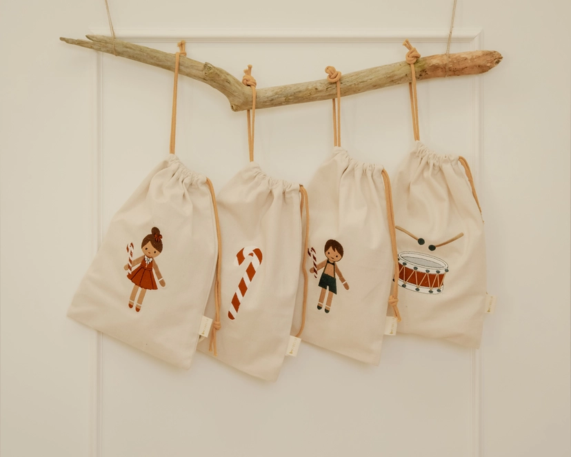 Fabelabs gavepose – Candy Cane er et charmerende og genanvendeligt alternativ til traditionel gavepapir. Den er lavet af blødt stof og pyntet med et muntert candy cane-broderi, og er perfekt til at pakke julegodter eller små gaver ind.