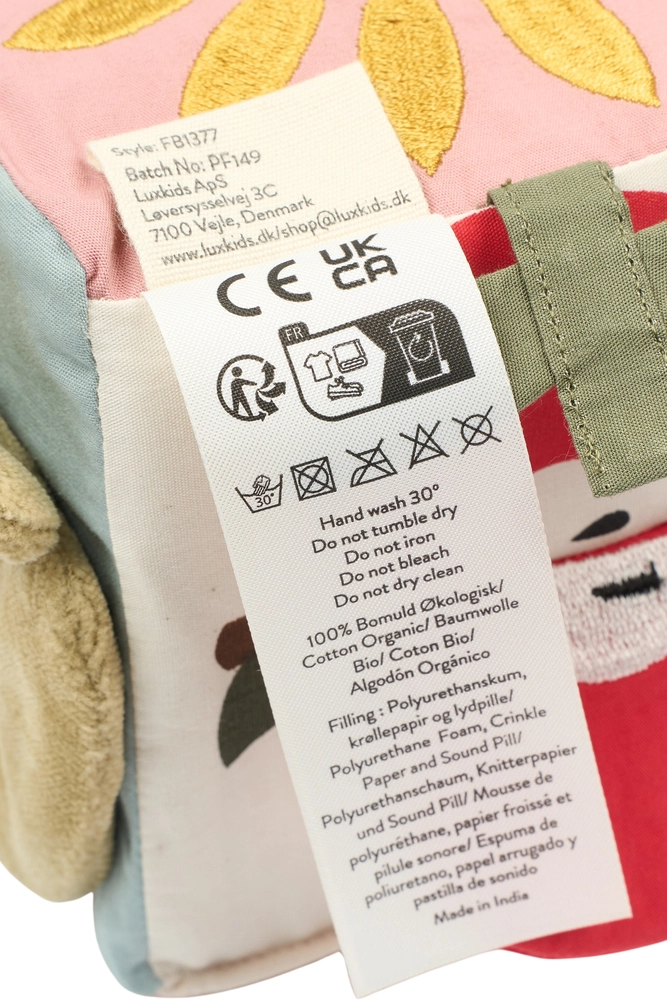 Fabelabs stofterning indeholder mange aktiviteter, der stimulerer babyens sanser! Terningen lader din lille udvikle sanser og færdigheder, og den har den perfekte størrelse til en lille hånd.
