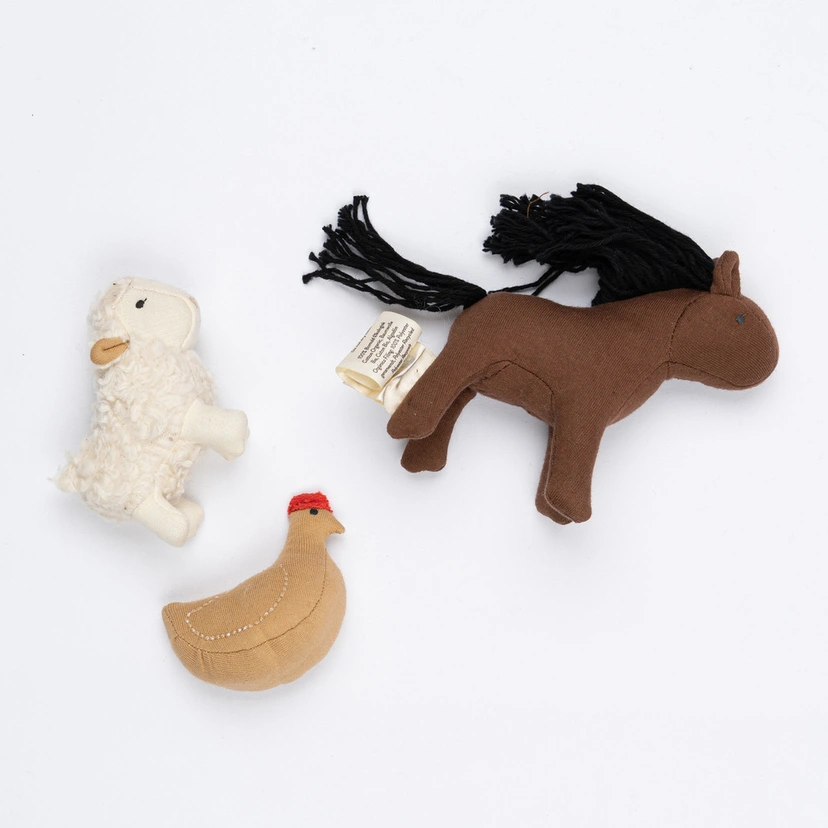Dejlig hest, får og kylling i vores Pocket Friend-størrelse. Perfekt til den lille at lege med og passer ind i Fabric House Farm, alle lavet af 100% økologisk bomuld. I varmen af ​​din lomme vil de t...