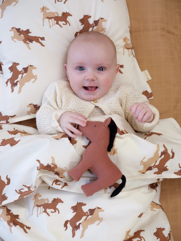 Fabelabs rangle - Hestehildur er lavet af økologisk bomuld, er blød og nem at gribe og lege med for din lille guldklump.