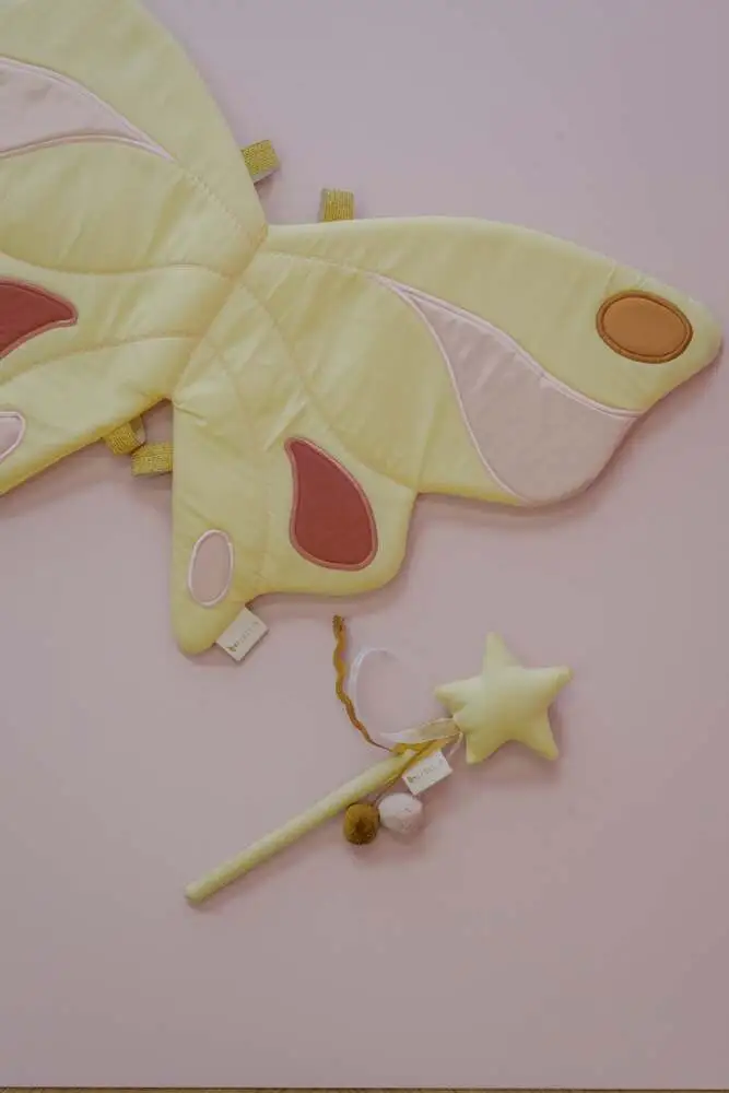 Med fe-støv og fnisen overalt, bringer feerne fra Eventyrlandet magi til alle fantasiens hjørner. Lad din lille guldklump klæde sig ud i vores fortryllende Eventyrland-udklædningssæt med glitrende fe-vinger, en tryllestav med stjernespids og en blød, størrelsesfleksibel nederdel med en gylden elastisk linning.