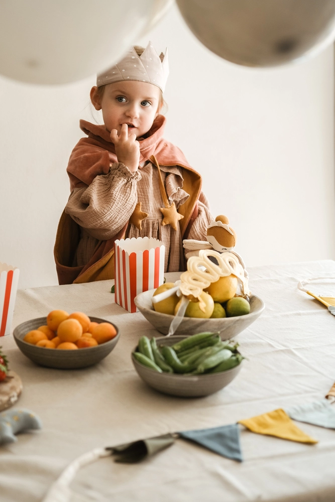 Hersk med ynde og elegance i denne fantastiske dronningekappe og krone! Denne kappe er lavet af blødt, fløjlsagtigt rødt stof med fine detaljer og forvandler enhver lille til en ægte kongelig. Den matchende krone tilføjer det perfekte finish og gør den ideel til fantasifuld leg, kongelige baller og store eventyr.