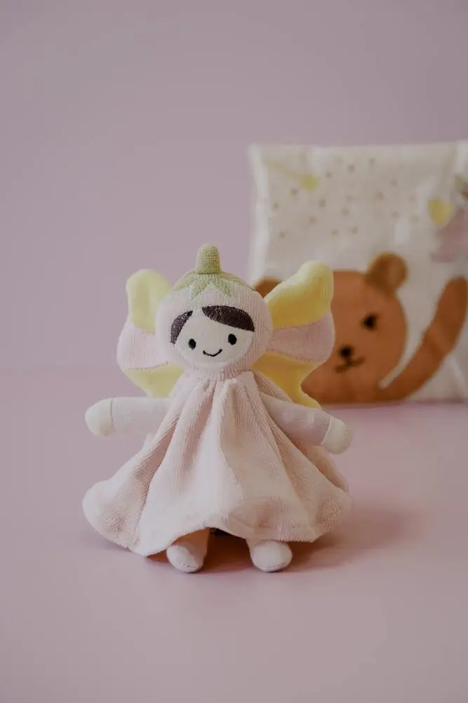 I varmen af din lomme vil den blide Lommeven – Fe leve. Hun er der for at trøste dig, lege med dig og sørge for, at du aldrig føler dig alene. Uanset om du rejser langt væk eller bare flytter mellem hjem, bringer hun magi, kontinuitet og mod, uanset hvor du går hen.