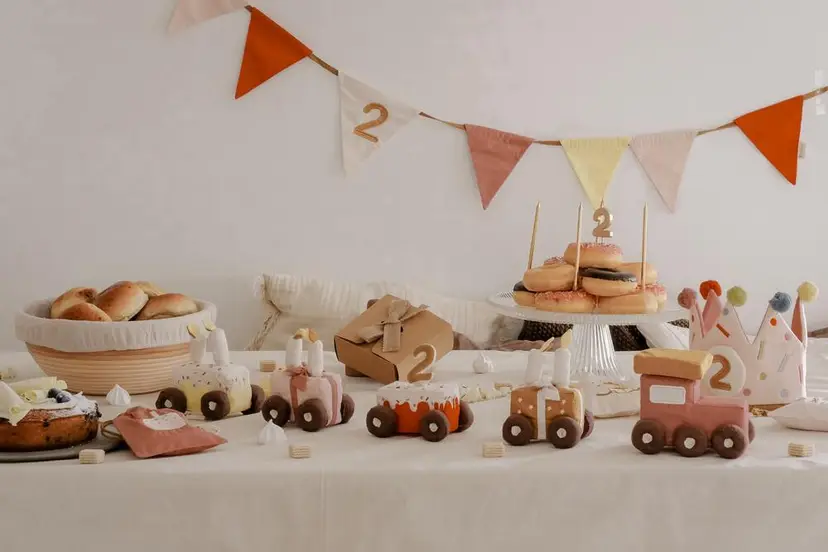 Fabelabs Guirlande – Celebration Rose Mix fås i en blød blanding af rose, lyserød, creme og lysegule toner. Med otte stofflag og et udskifteligt talflag (1-9) er den lavet til at markere fødselsdage med sødme og stil.