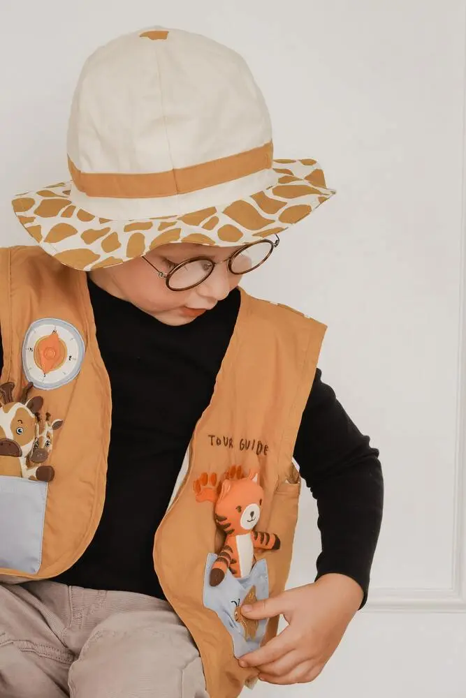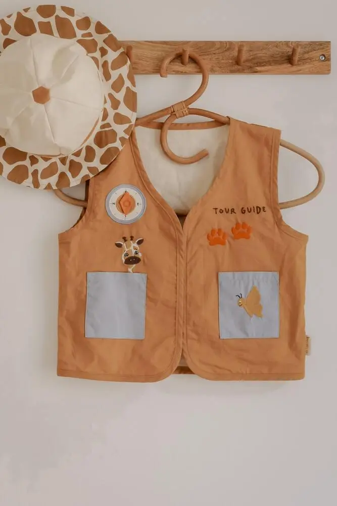 Gør dig klar til eventyr! Safari Tour Guide Dress-Up Set forvandler din lille til en modig opdagelsesrejsende. Med en vest og en klassisk safarihat er det det perfekte outfit til at spotte vilde dyr og fortælle spændende historier.