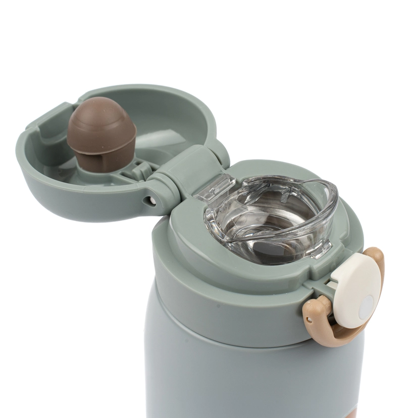 Fabelabs vandflaske er perfekt at tage med på farten eller i børnehave og skole. Vandflasken er nem for de små at bruge og drikke af med den nemme, men sikre åbning, der forhindrer vandflasken i at åbne sig inde i skoletasken. Der er tilføjet en drikketud for sikker drikkevaresikkerhed, og den passer perfekt i siderne af vores nye rygsæk - stor. Vandflasken rummer 320 ml og er lavet af rustfrit stål i 18/10 kvalitet og har en BPA-fri PP-plasthætte og silikoneforsegling. Vandflasken holder drikkevarer kolde i 24 timer og varme i 10 timer og hverken modtager eller afgiver smag under brug. Pleje og brug: Vask vandflasken i koldt eller varmt vand med en blød svamp eller børste for at rengøre indersiden. Hold vandflasken ren for at undgå lugt, og opbevar vandflasken uden låg skruet på for optimal tørring. For grundig rengøring kan du fylde vandflasken med varmt vand med 10 % eddike i 30 minutter og til sidst rengøre med rent vand og en blød børste. Advarsel: Brug den ikke til kulsyreholdige drikkevarer, salte supper. osv. Rengør ikke vandflasken i opvaskemaskinen, da dette vil reducere den termiske effekt. Brug ikke slibemidler eller slibende rengøringsmidler. Ikke egnet til børn under 4 år