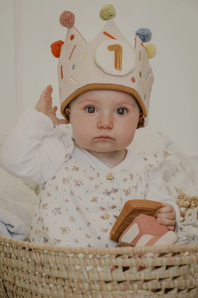 Fabelabs fødselsdagskrone – Rose Mix er skabt til fest! Med blødt stof i varme rosafarver og udskiftelige tal (1-9) er det et festligt og fleksibelt tilbehør, der vokser med dit barn. Aldersanbefaling: 12 måneder+
