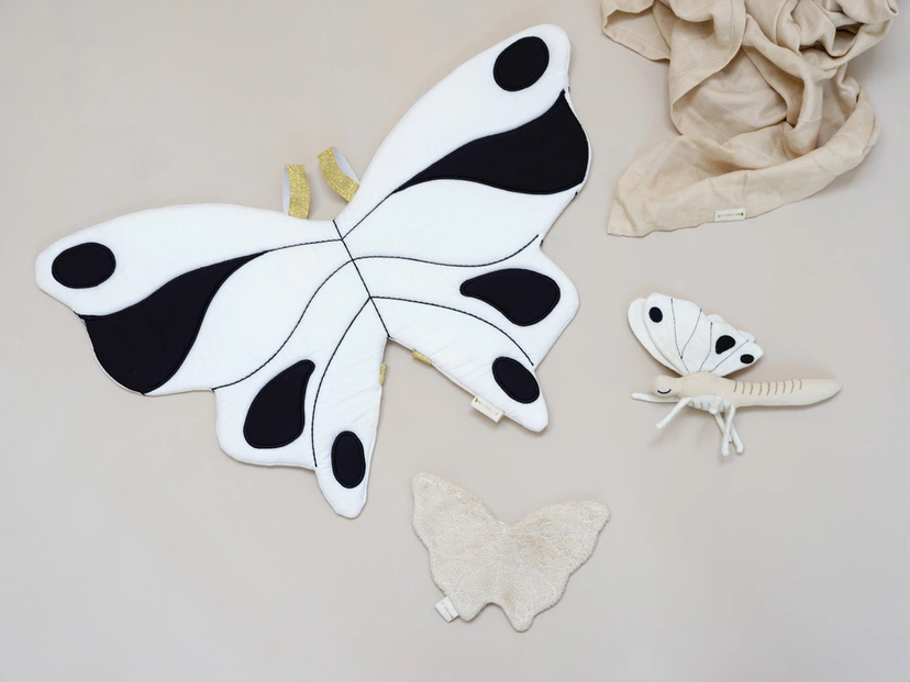 Tag Fabelabs vinger - Sommerfugl på, og lad som om du er den smukkeste sommerfugl, der flagrer rundt på engen. De dejlige vinger er designet med elastik, hvilket gør dem super nemme for din lille at have på!