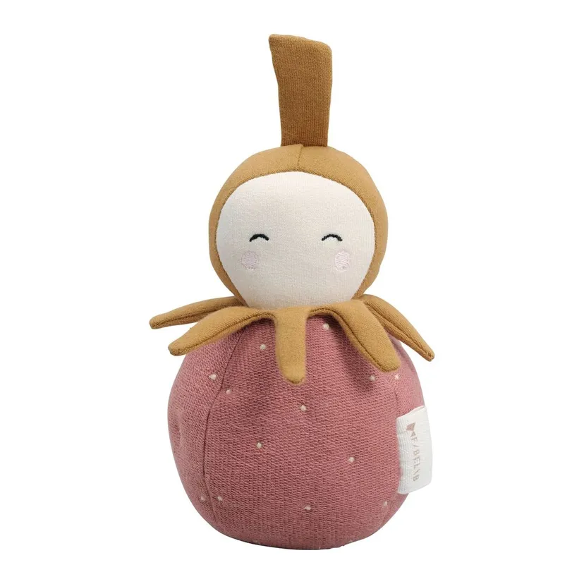 Fabelabs søde Jordbær-tumbler er en blød og sød ven, der kan underholde din lille guldklump. Giv hende et blidt skub, og hun vil vride og snurre rundt, mens hun laver de sødeste lyde. Et fantastisk legetøj til mavetid.